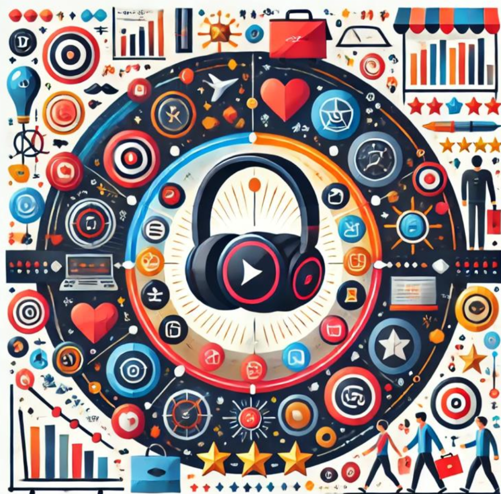 Here is the image illustrating Product and Brand Relationships in marketing using AI, featuring various elements that connect the product, brand identity, and customer experiences.